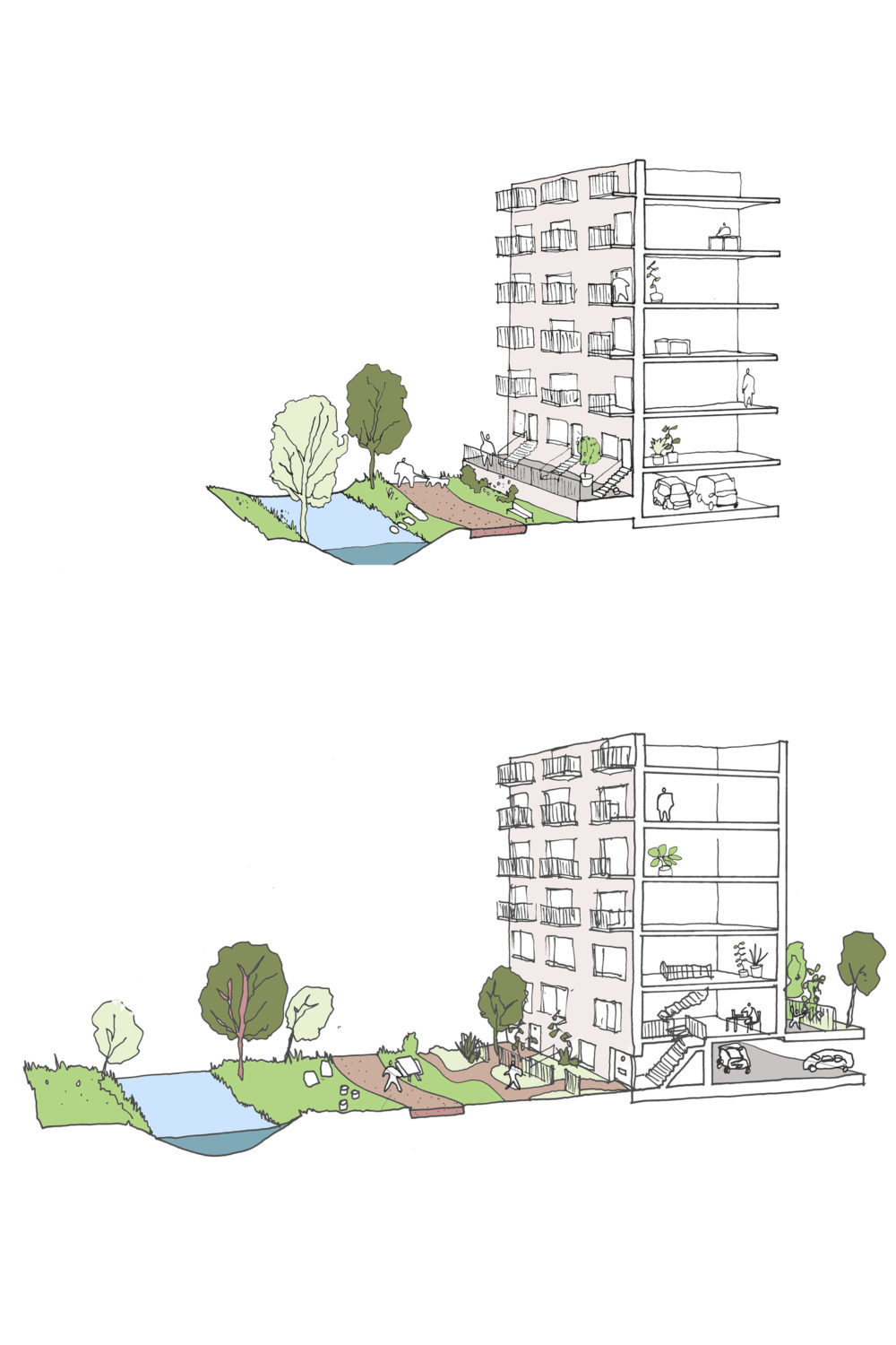 Masterplanning strategies had to be underpinned by more detailed design work to address some of the site constraints, including the fluvial flood risk.